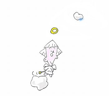「風邪なんて ヘッチャラさ!ほら このとおり かためでケンケン・・・・ン 下がみえな~い.」